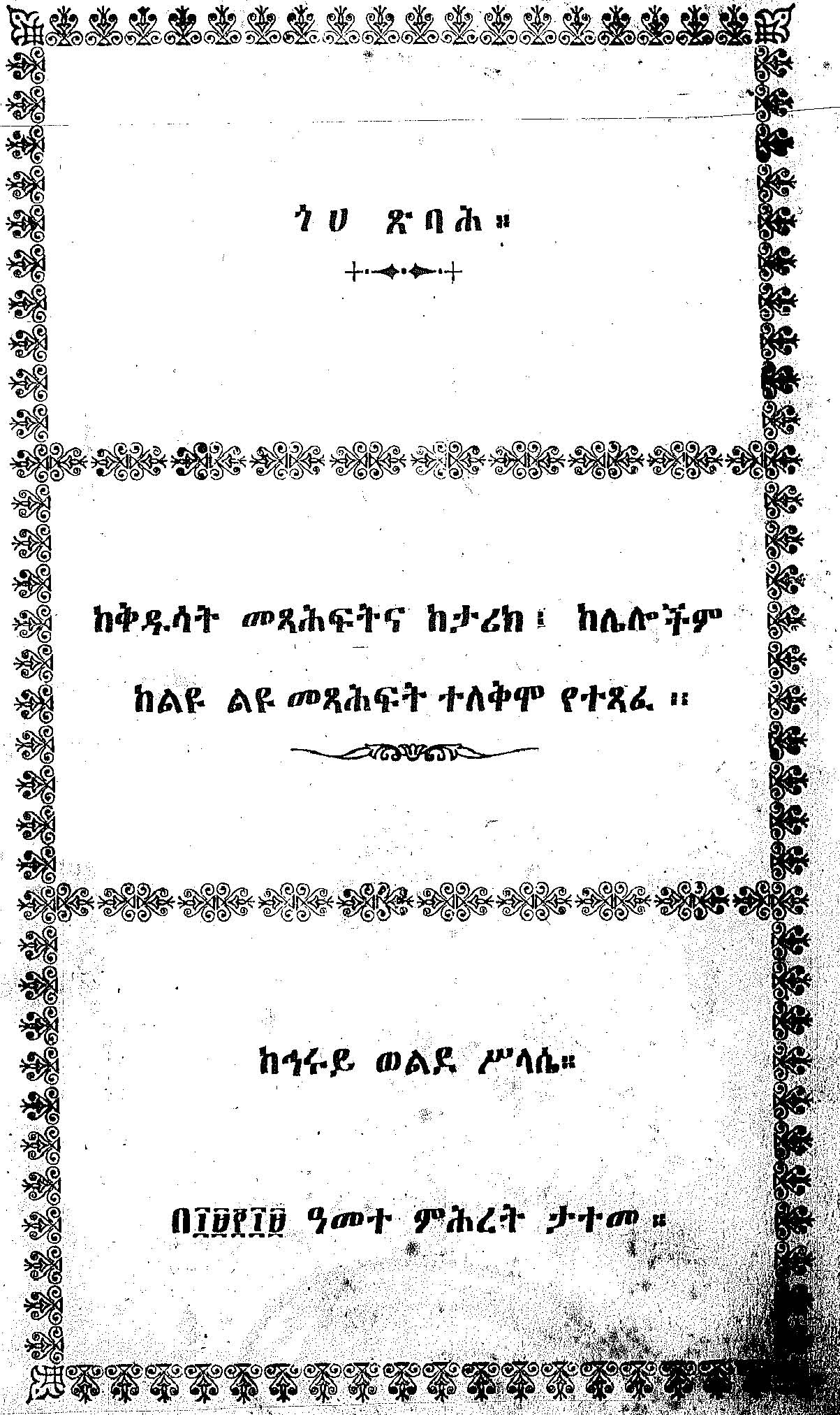 ምክንያቱም በቤተ መንግሥት የነበረባቸው ከባድ ሥራ፣ ለሚጽፉት መጽሐፍ የተገባውን ምርመራ ለማጥለቅና ለማስፋፋት ፋታ አልሰጣቸው ስላለና ላገራቸው ሕዝብ በነበረባቸው ፍቅር፣ እርሳቸው ካወቁት ከብዙው ጥቂቱን ሳያስታውቁት ቢቀሩ “ዘደፈነ ወርቀ እግዚኡ” እንዳይሆኑ ሲሉ ይሆናል።